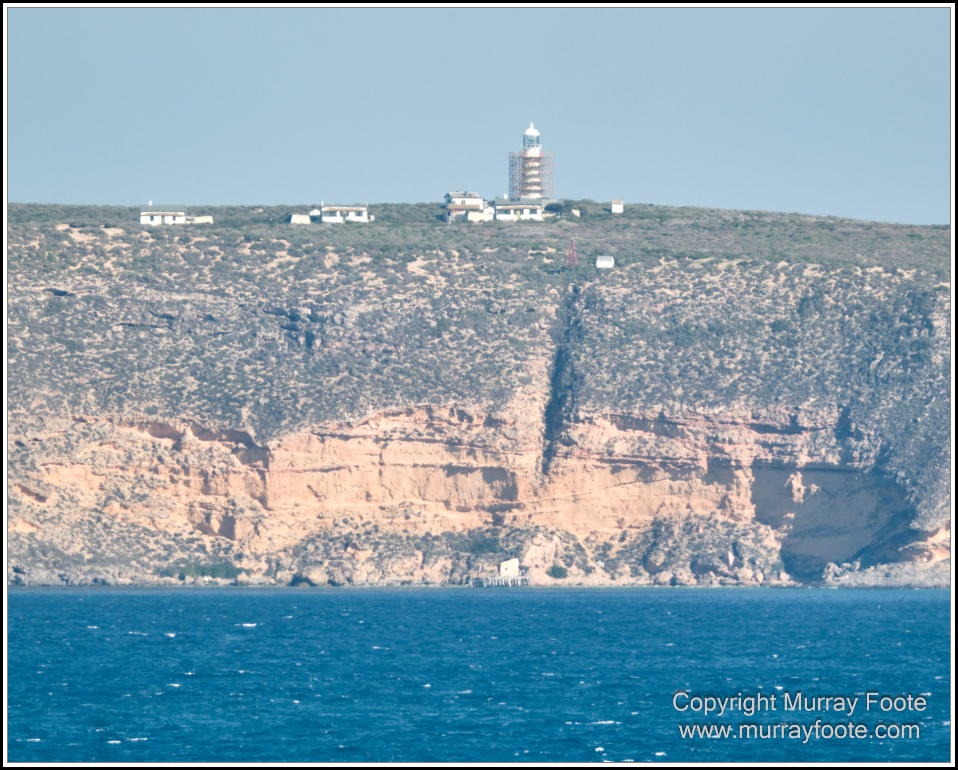 Taken with a very long telephoto lens (full-frame equivalent 1260mm). Lines on the buildings are a bit distorted due to distance haze. Note the groove in the cliff above the wharf. Until the arrival of air transport, everything and everyone would have been hauled up or down there. I visited there on my lighthouses trip in 1987. There are some images and an interesting story in this post.