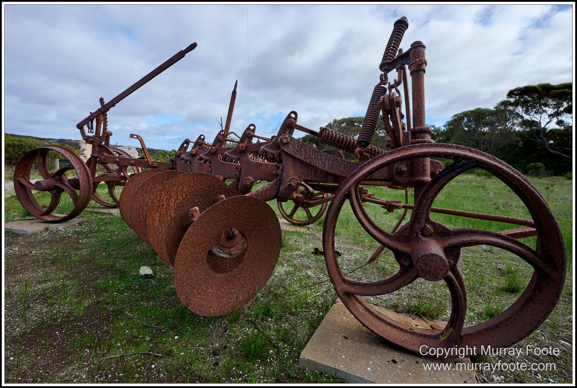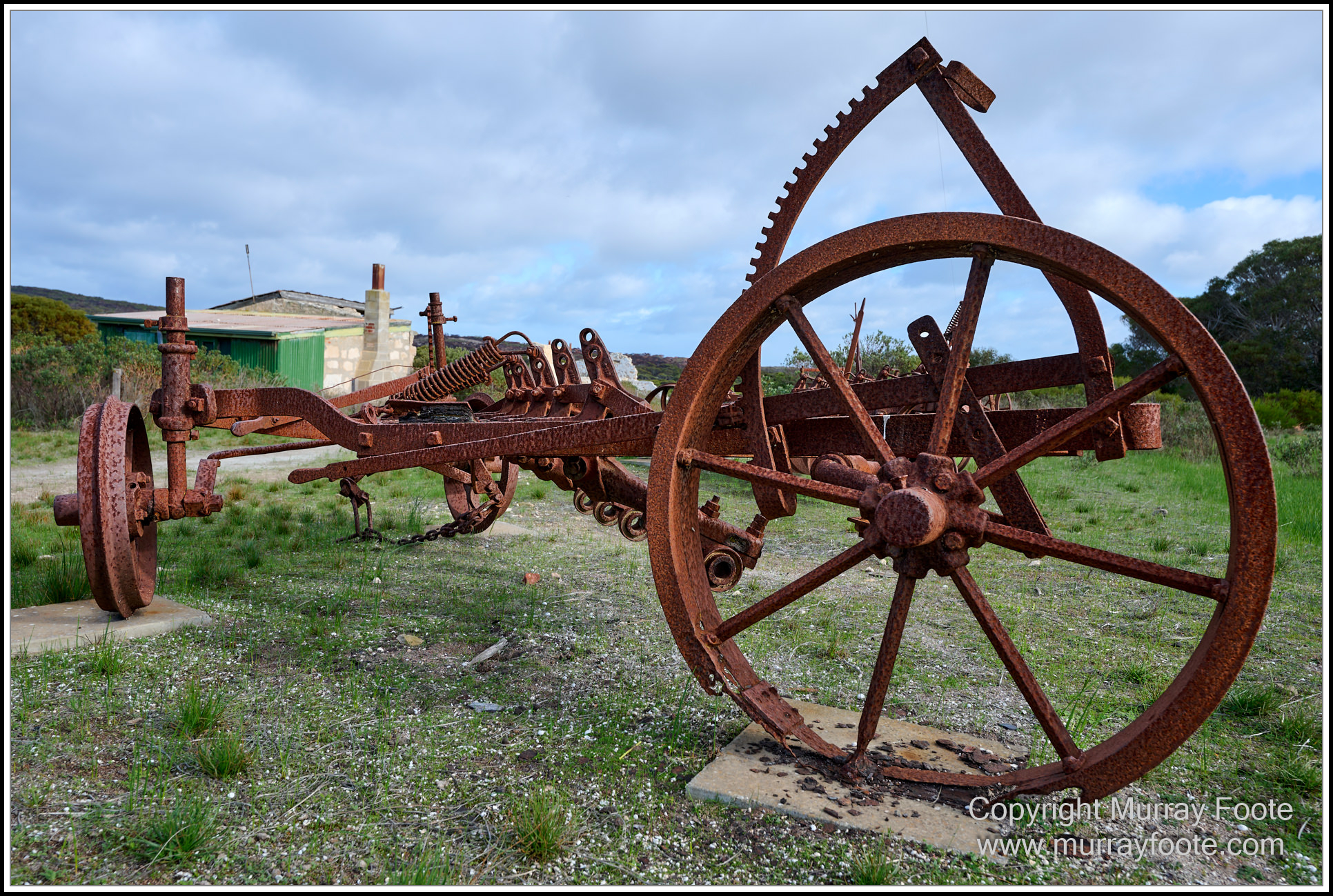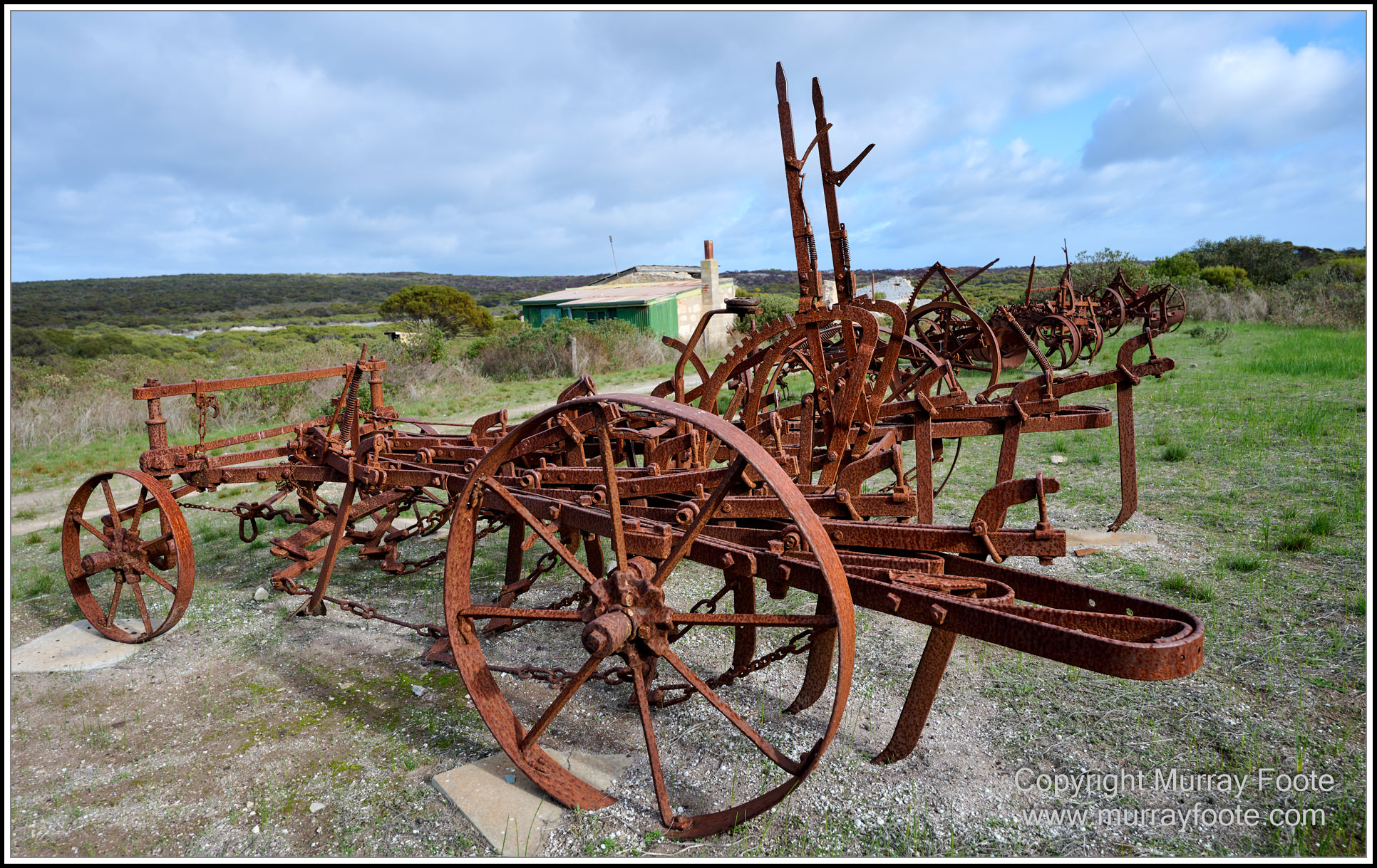 A collection of old agricultural machinery.