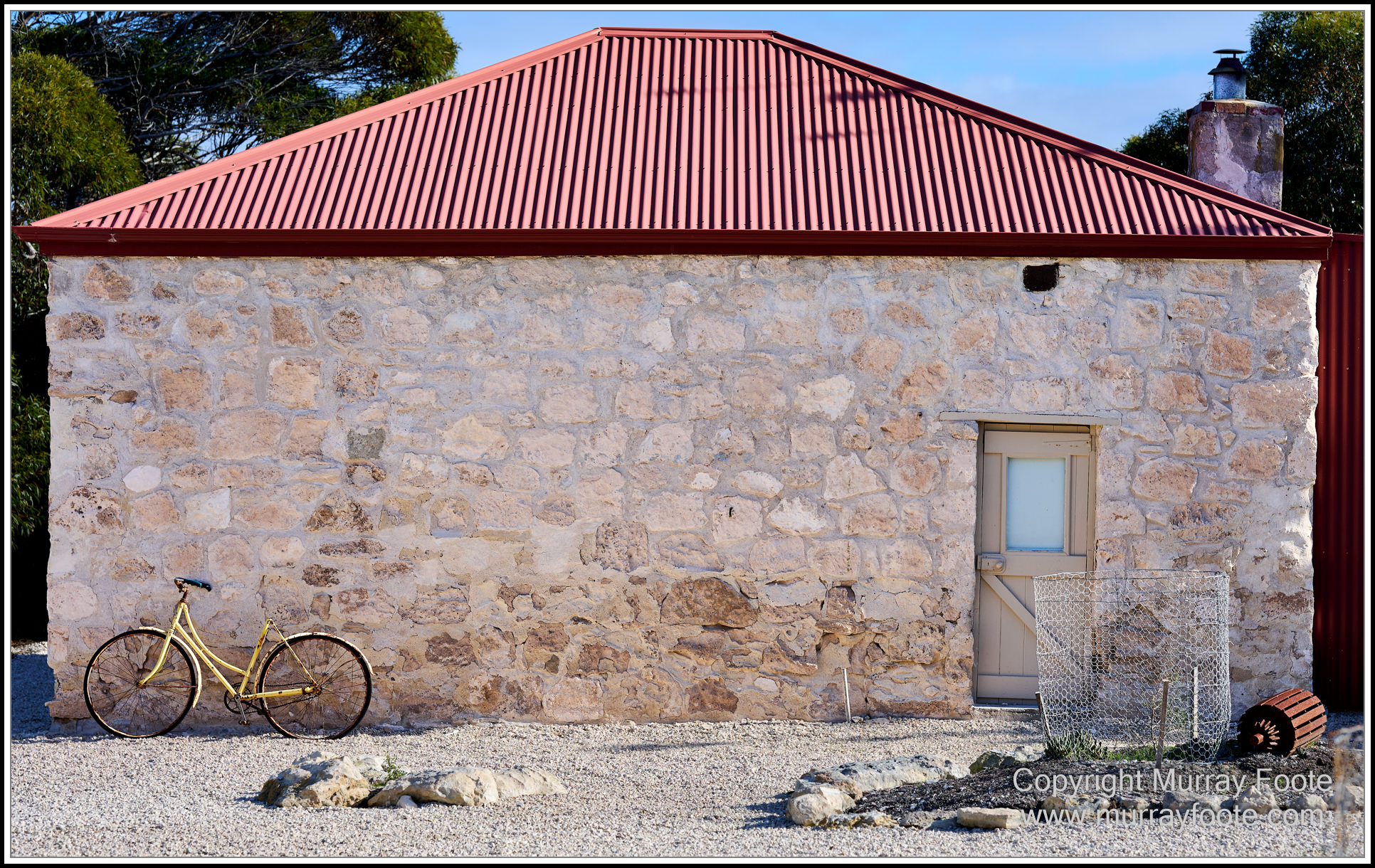 Limestone house and bicycle.