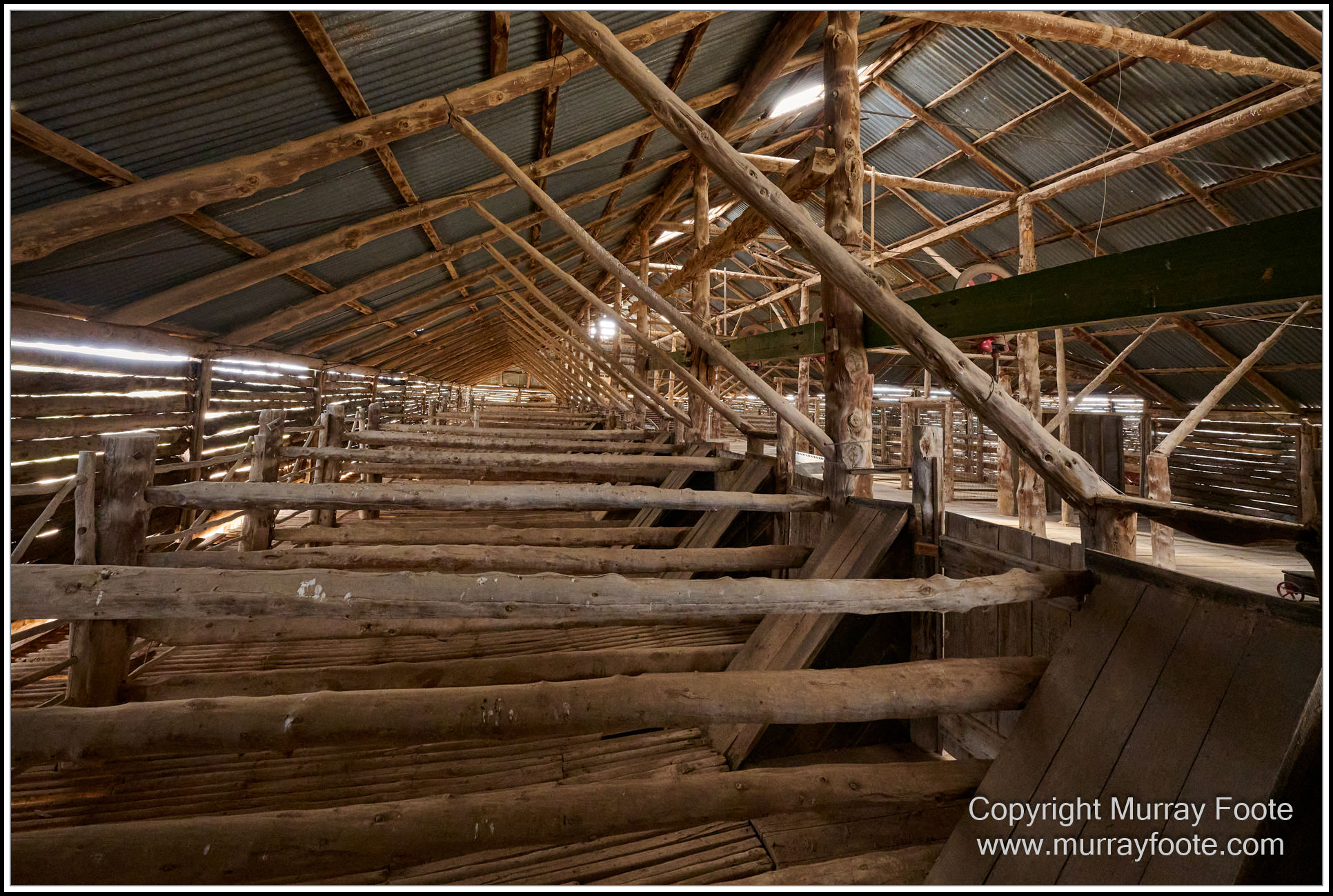 This is the shearing shed at Lake Mungo  Built in 1869, it is an ingenious drop-log cypress pine construction.