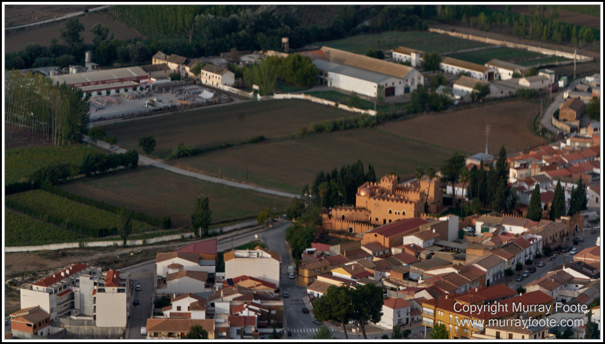I can for this one, because I was able to read the company name of the building at top left. It is Pavimentos Ramos y Ruiz (Pavements produced by Ramos and Ruiz). In the centre right is Castilo de Castillejo, in the village of Lachar, about 20 minutes drive from Granada. It has its origins in the Emirate of Granada but was rebuilt in the neo-Arab style in the late nineteenth century.