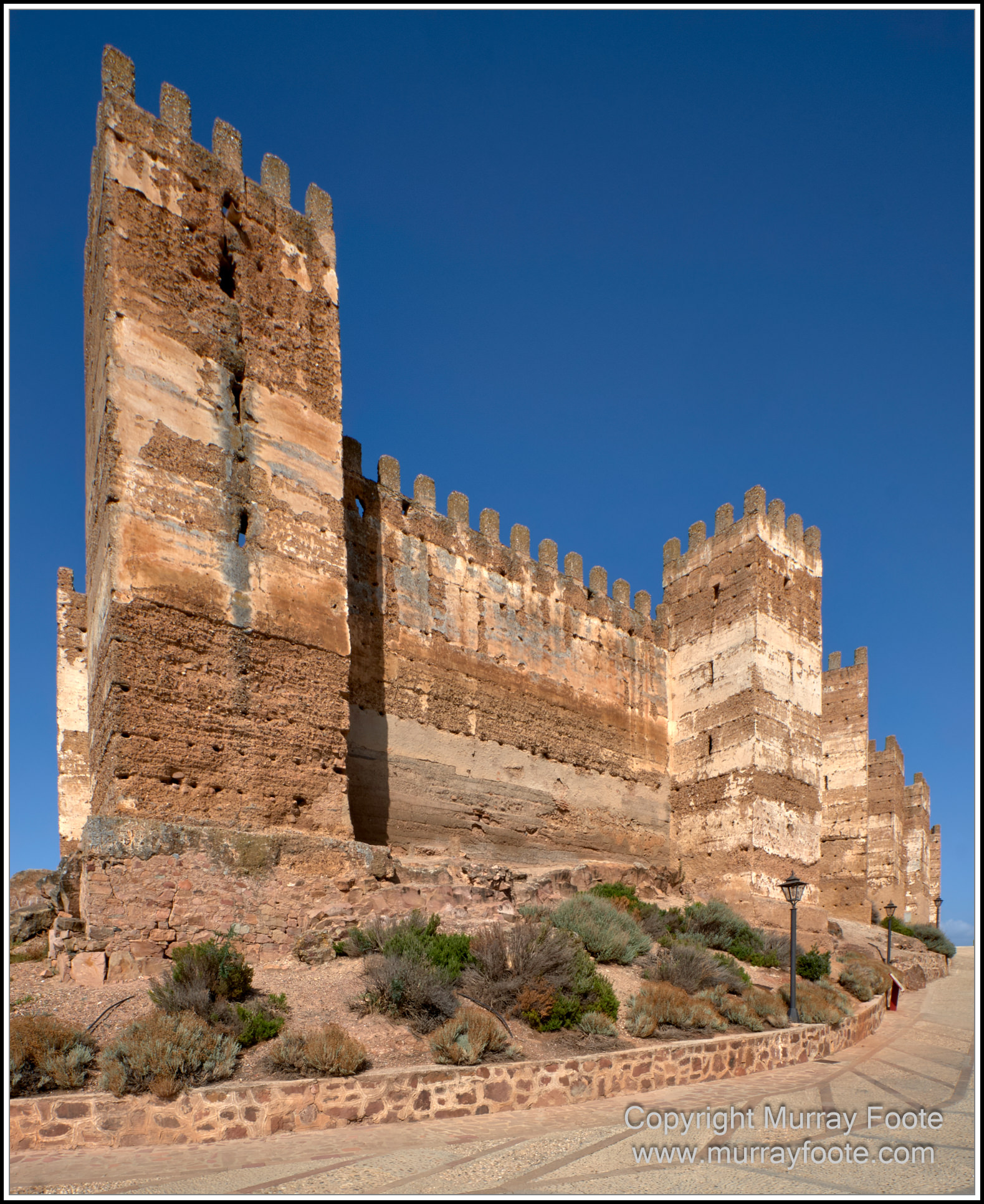The original castle was built by the Moors in the 8th century but little remains of that. It withstood seiges by Ferdinand III of Castile in 1225 and 1230 but fell to another in 1245-46. The current castle was mainly constructed by Ferdinand after that time.