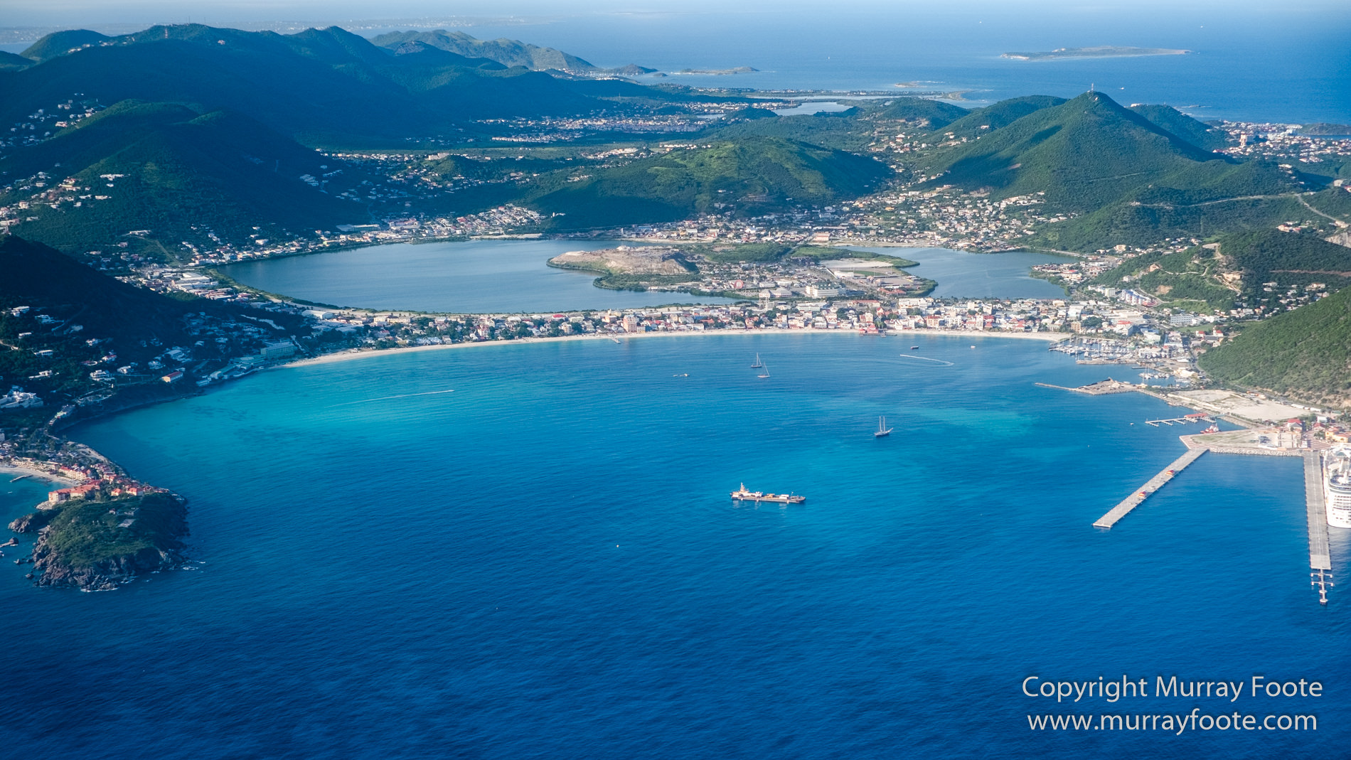 This is a St Martin (as opposed to Sint Maarten) view, looking north over Simpson Lagoon with Marigot at the right at the end of the lagoon and Anguilla on the horizon.