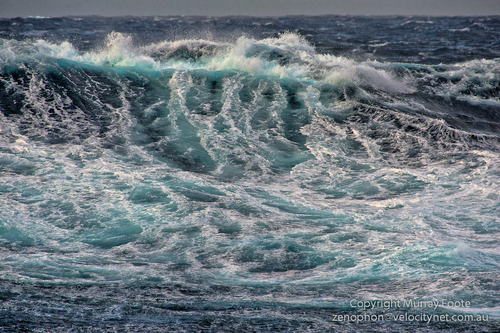 Early on in the day, there was some blue sky, a phenomenon we had seen little of in the last week.  Up in the Bridge in the early afternoon, a brilliant glare of sunlight came bouncing in off the water.  But that didn’t mean it was calm.  We continued riding the huge swells coming up from behind us and the ship at times swung somewhat alarmingly from side to side.