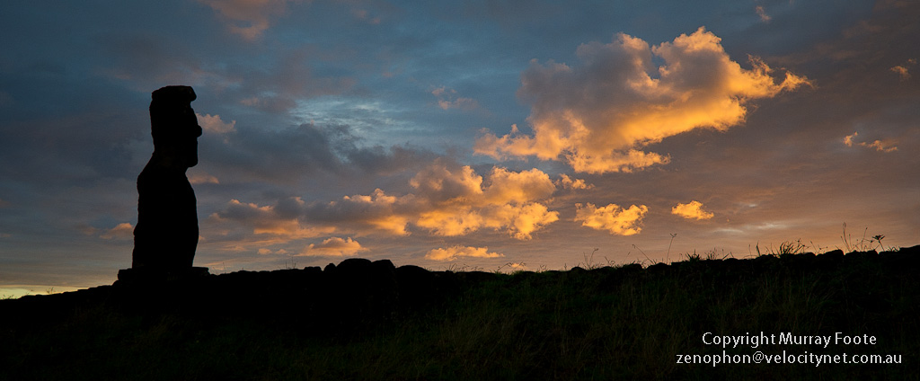 This is reputedly the last ahu built, in the mid 1600s. The moai is in reasonably good repair and appears to have eye sockets so presumably the ivi atua (priests) would have inserted eyes on special occasions.