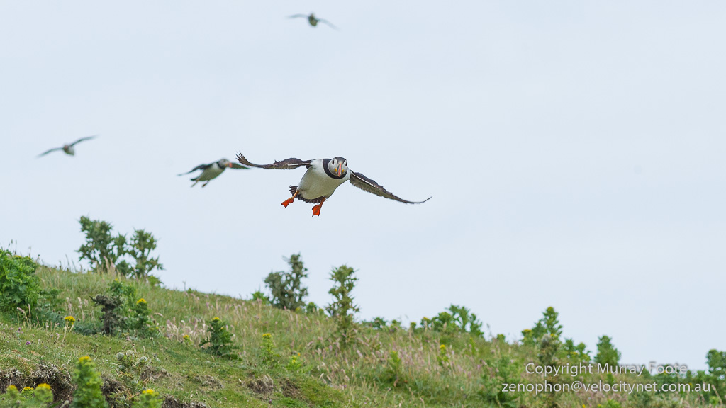 On Mingulay I also got the opportunity to photograph puffins. Most photographs of puffins you will see show them sitting on the ground. In some places they will come quite close to you. Photographing them in the air is much harder because they are small and surprisingly quick.
