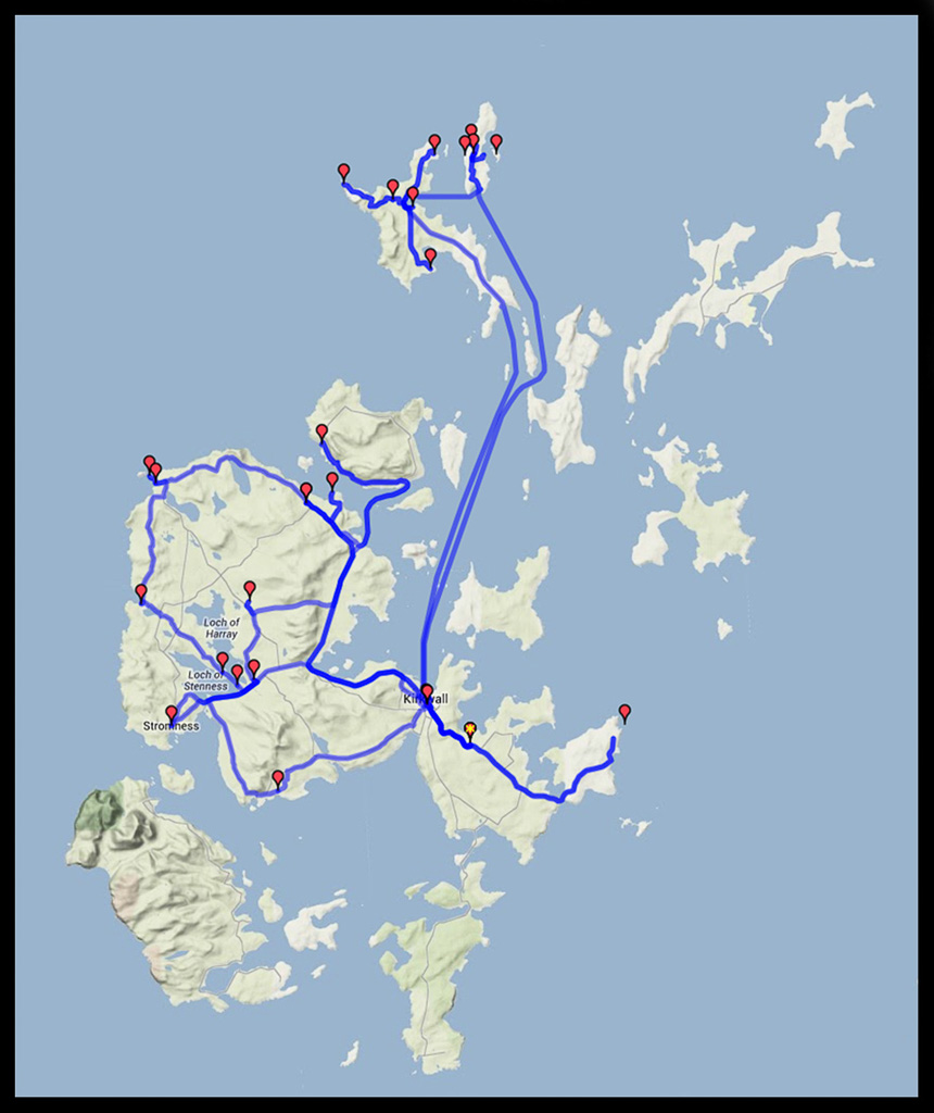 From Inverness, I fly to Orkney. On one day I will be visiting the remote northern islands of Westray and Papa Westray. Other than that I will be mainly on Mainland (the largest island) apart from a brief visit to Rousay.