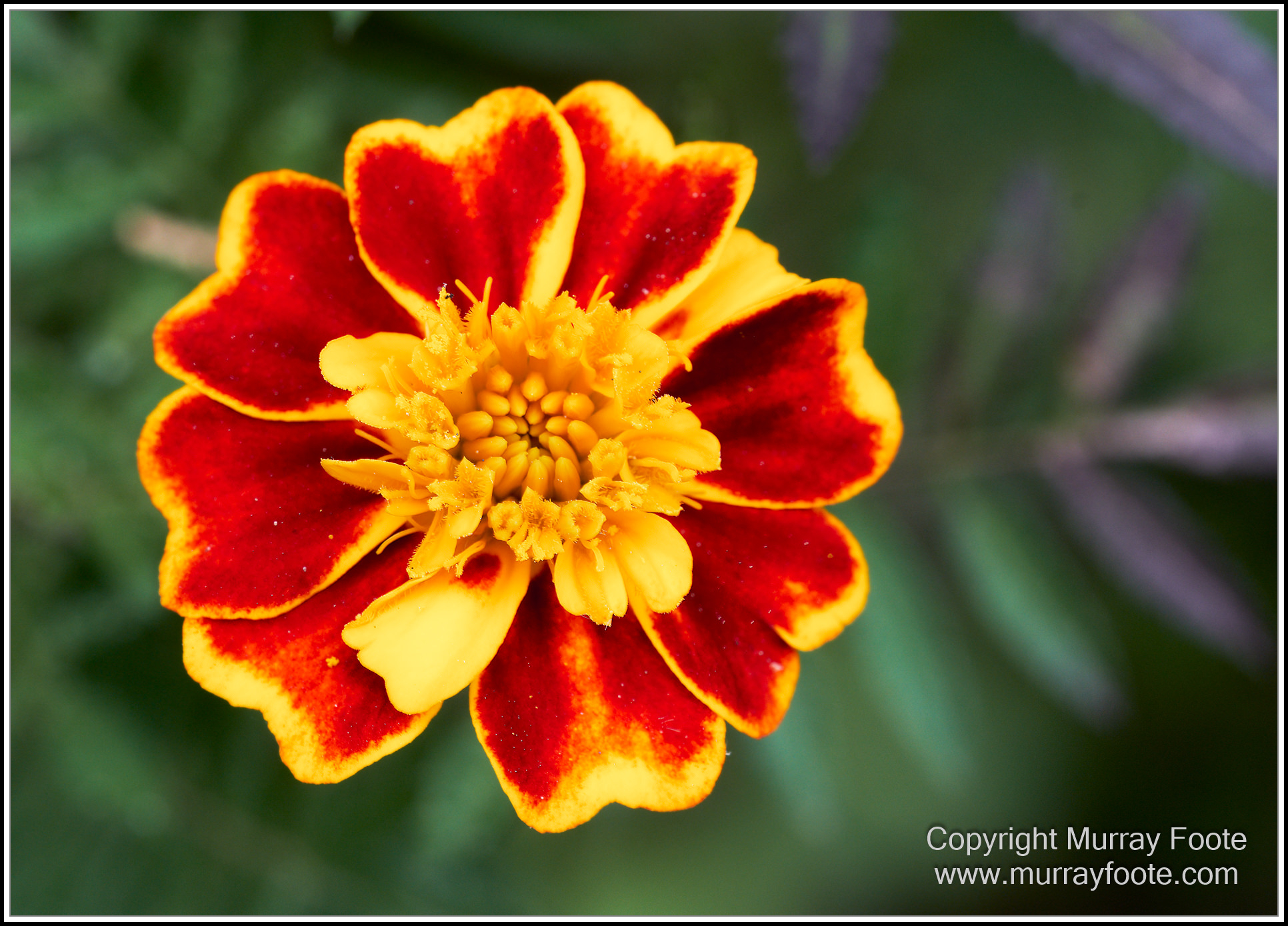 I took both rose images using focus stacking. That means taking multiple images at slightly different points of focus and combining them for a greater depth of field. The hibiscus, the pomegranate and the marigold were single images.