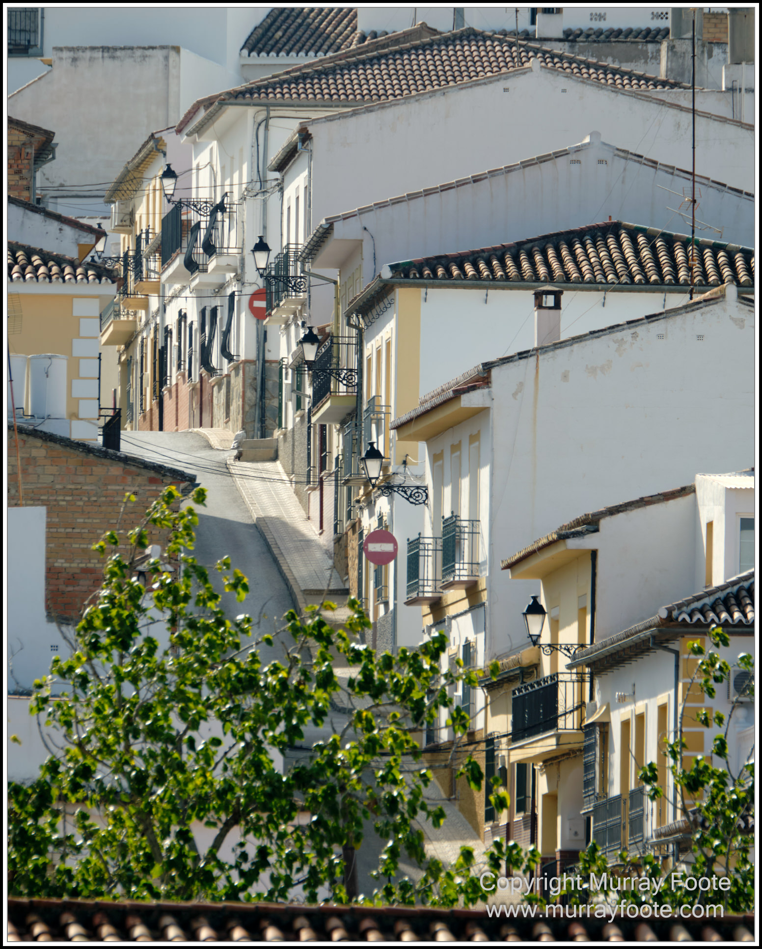 As we leave Antequera, here is a long telephoto shot of a city street. Evidently it is a one-way street, downhill only. Working brakes would be desirable. Skateboards would be exiting, for a short period at least.
