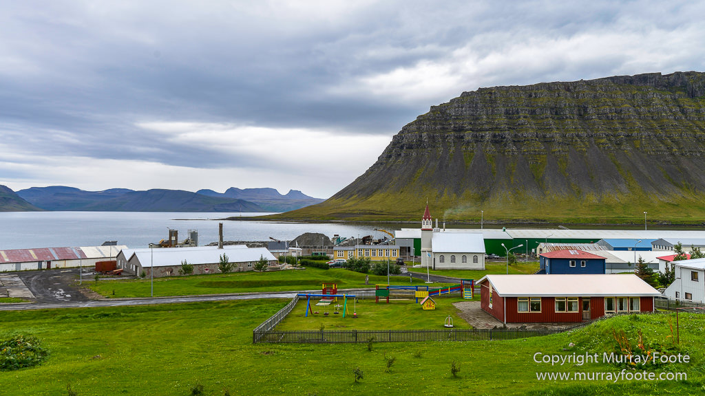 Distant view of Bildudalir (the town) and Suðirfirðir (the fjord) behind it.