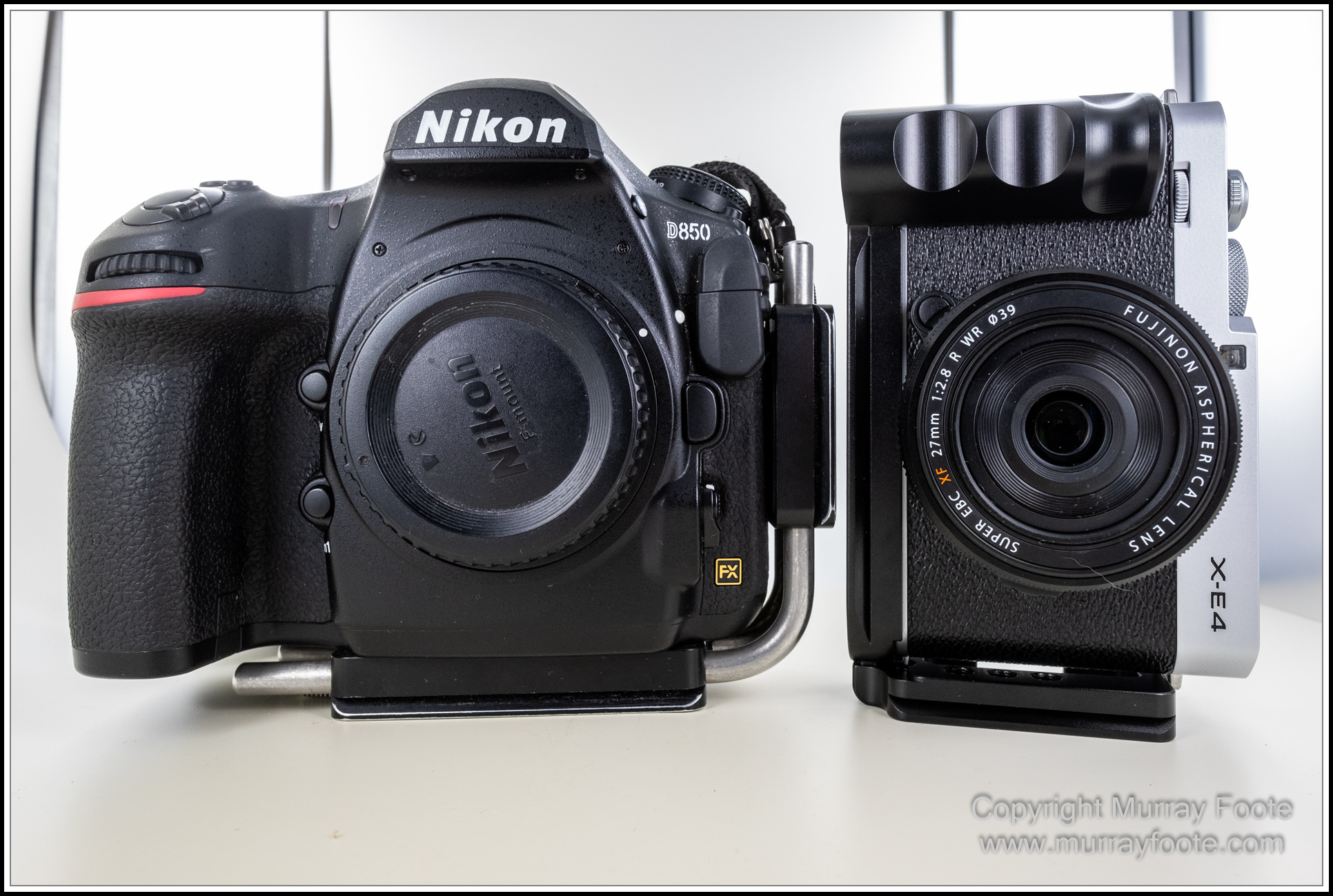 Nikon D850 vs Fujifilm X-E4. You might notice one is a little larger.