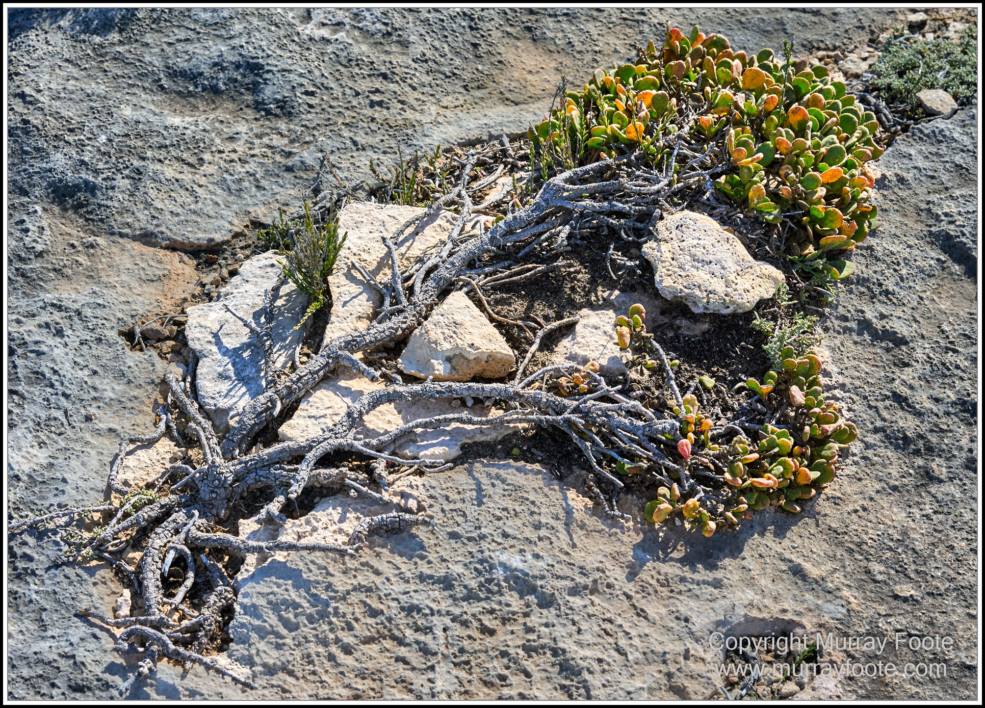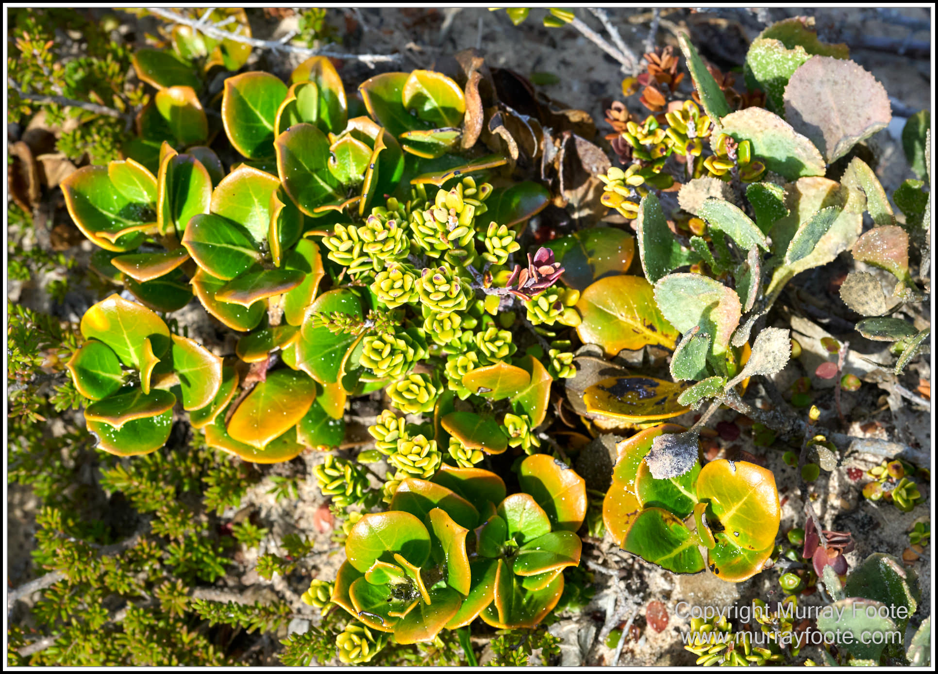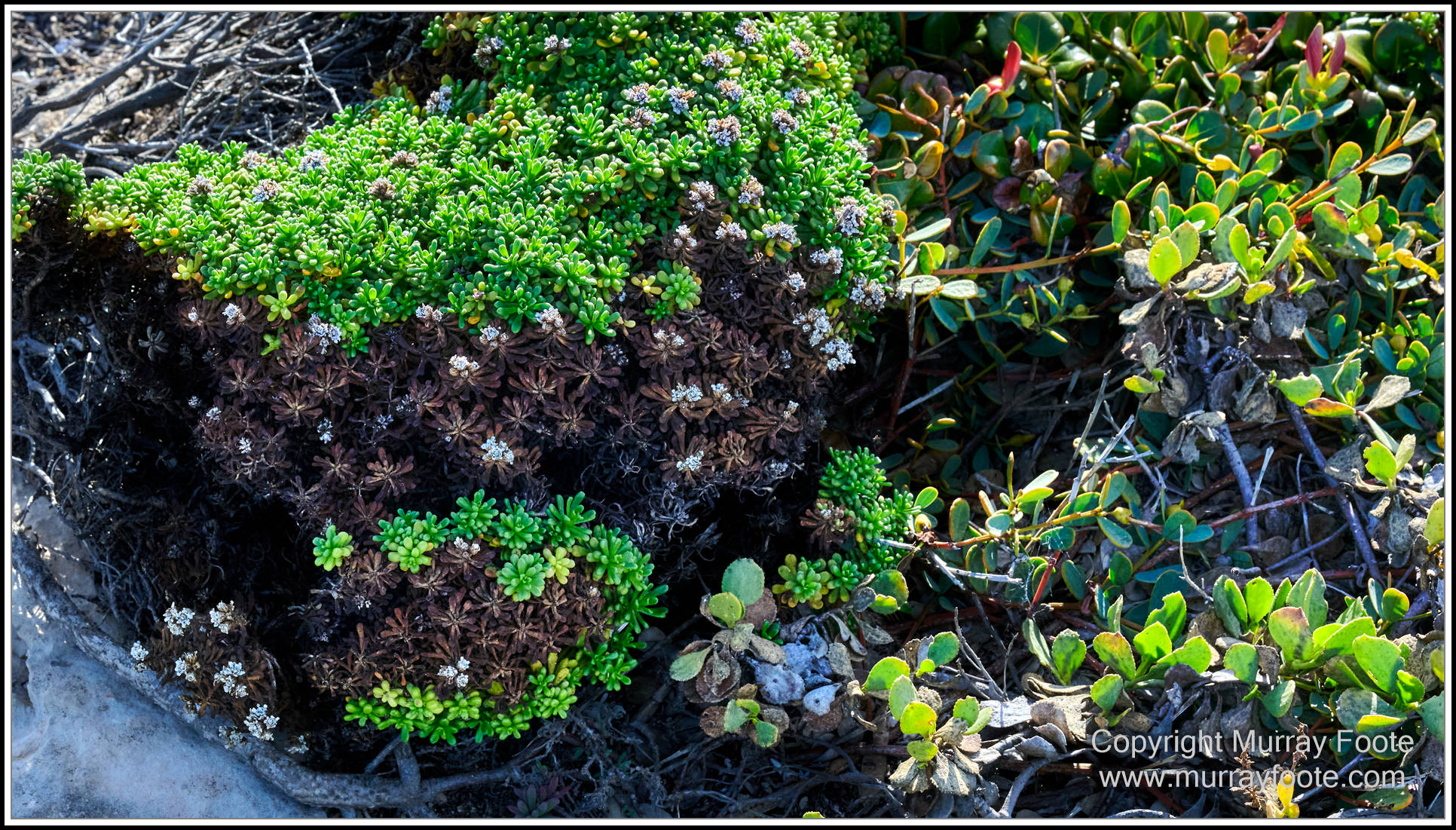 “The shallow soils, strong winds and salt spray make life tough for plants. Only salt-tolerant plants are able to survive the constant spray on the coastal slopes. The plants that grow here have a ‘salt-pruned’ shape – the foliage on the seaward side is raggard while the growth on the inland side is lush so the plants look uneven”.