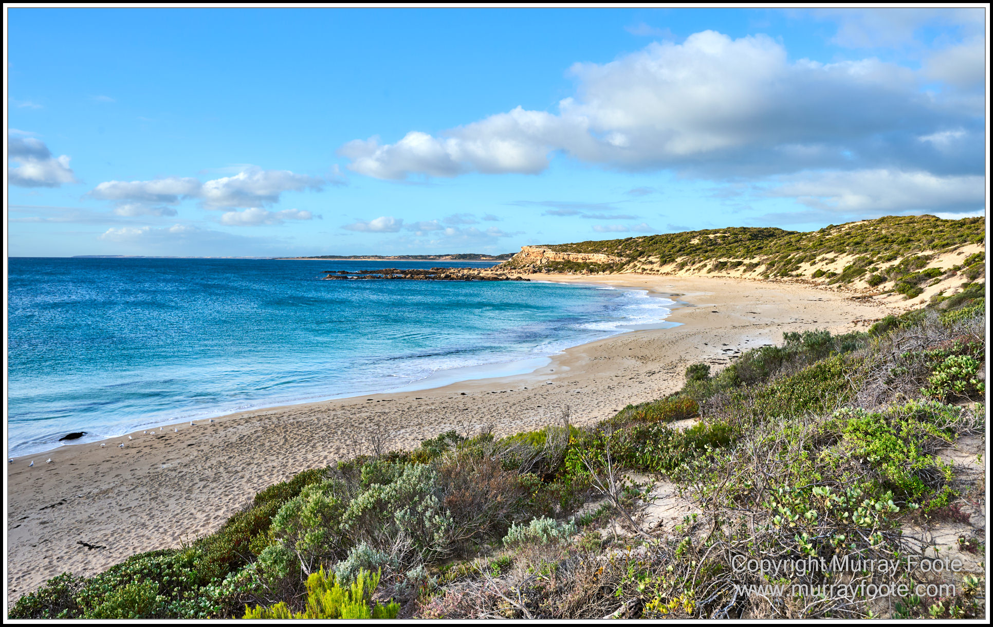 We are now at West Cape Lookout again, looking east along the beach, Althorpe Island at far right.