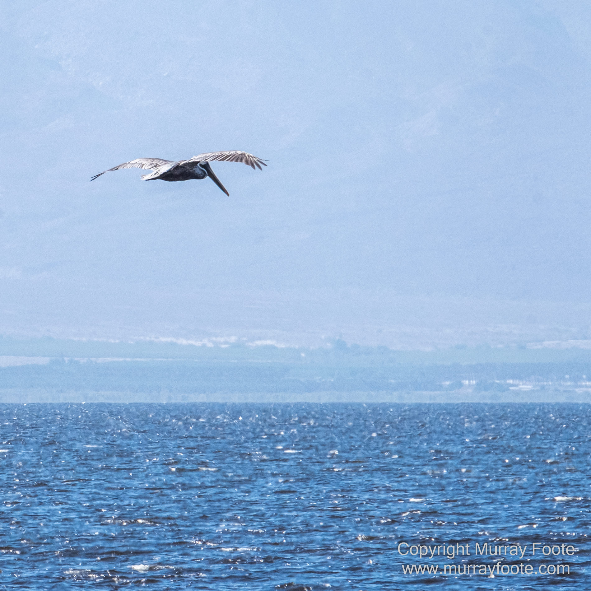 Pelican on the wing. Perhaps the rared brown pelican rather than the white one.