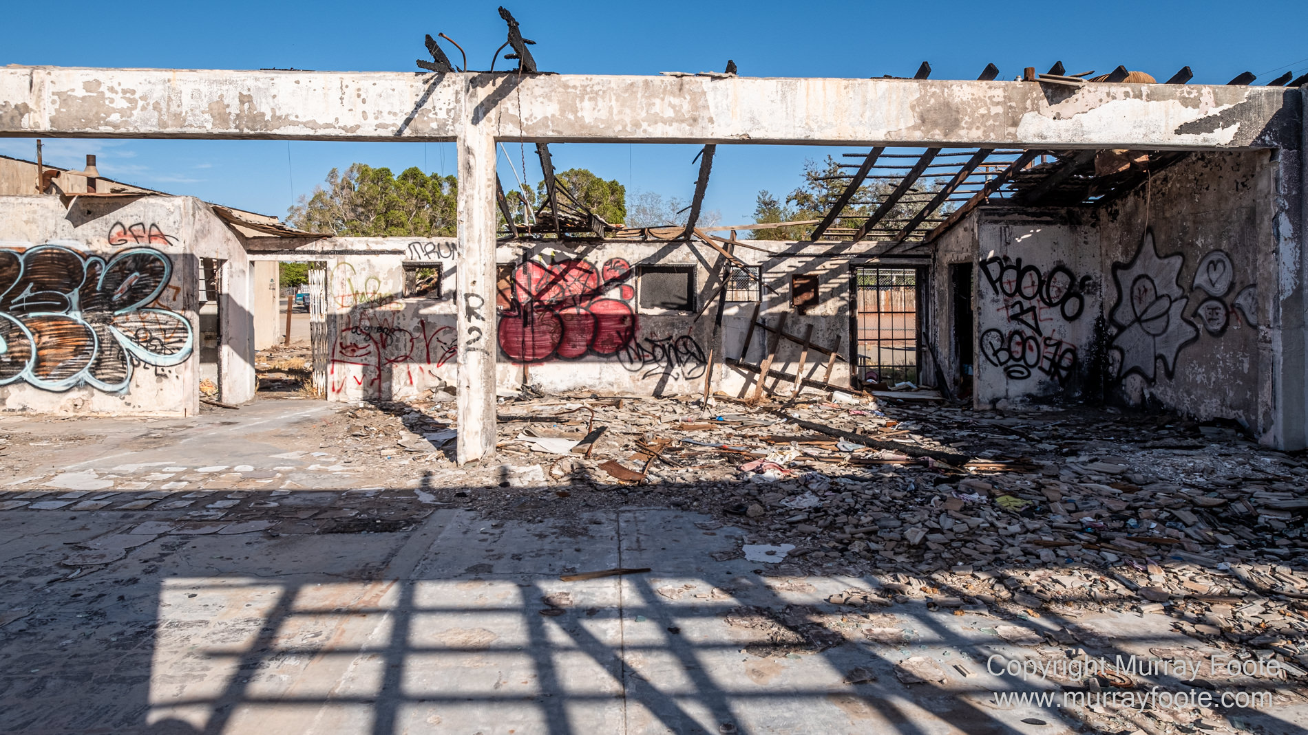 A few surviving palm trees.