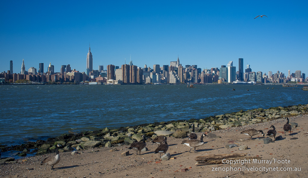 So we wandered to a nearby park at the waterfront with a view across to Manhattan and a flock of Canada geese at the shoreline. We had great difficulty finding a taxi that day. Most weren’t available and the few that were weren’t interested. So we did a lot of walking in between subway stations.