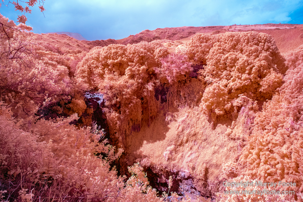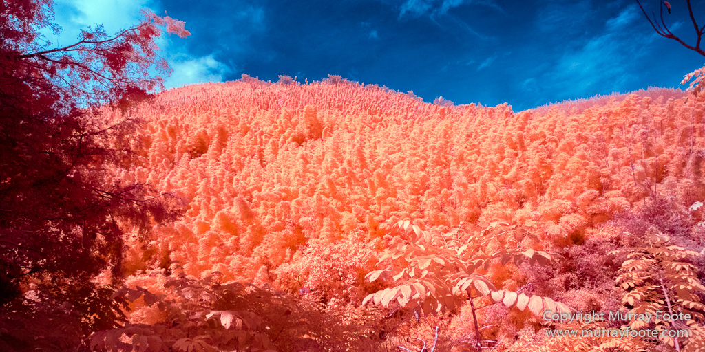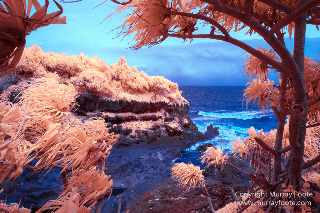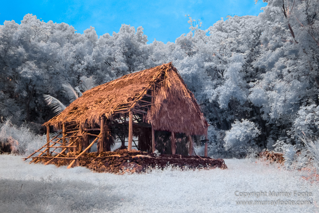 The image above is of a Hale Ku’au, a house for displaying, storing and trading. The thatch stands out so much from the surrounding vegetation because this is an infrared image. Live plant material emits infrared light and the thatch is not living vegetation so it is quite a different colour to the trees behind.