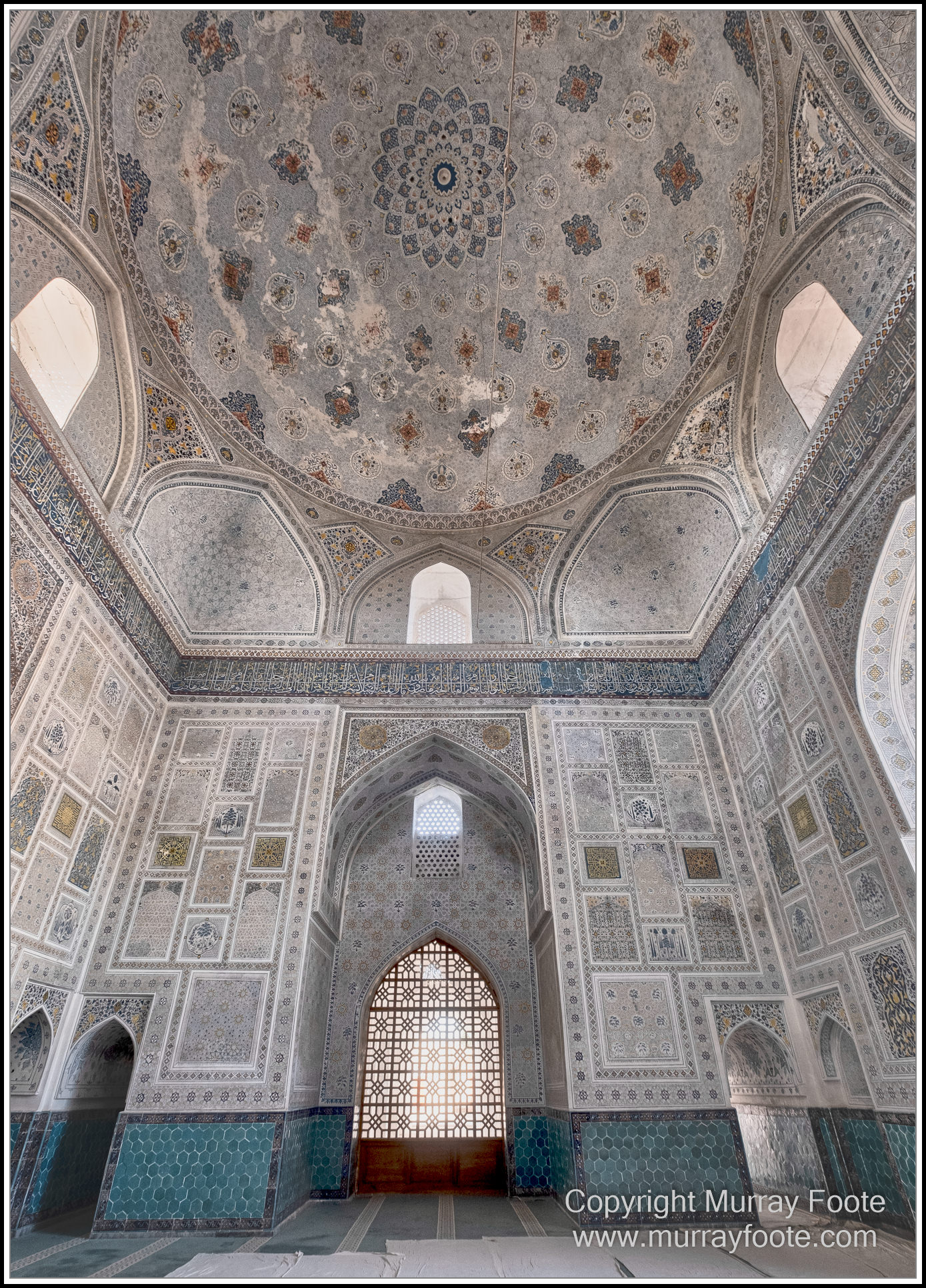 The three final images are inside the Kok-Gumbaz (Blue Dome) Mosque built between 1435 and 1436 by Ulugbek in honour of his father (and Timur’s son) Shah Rukh.