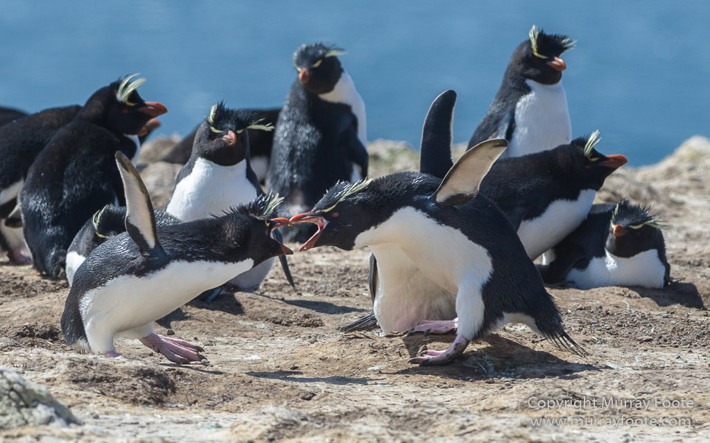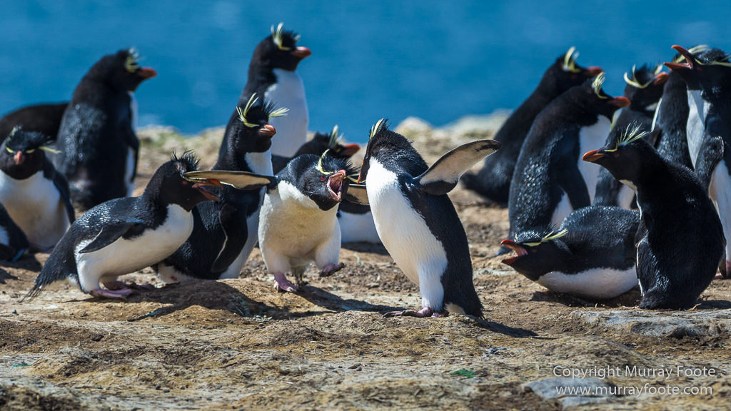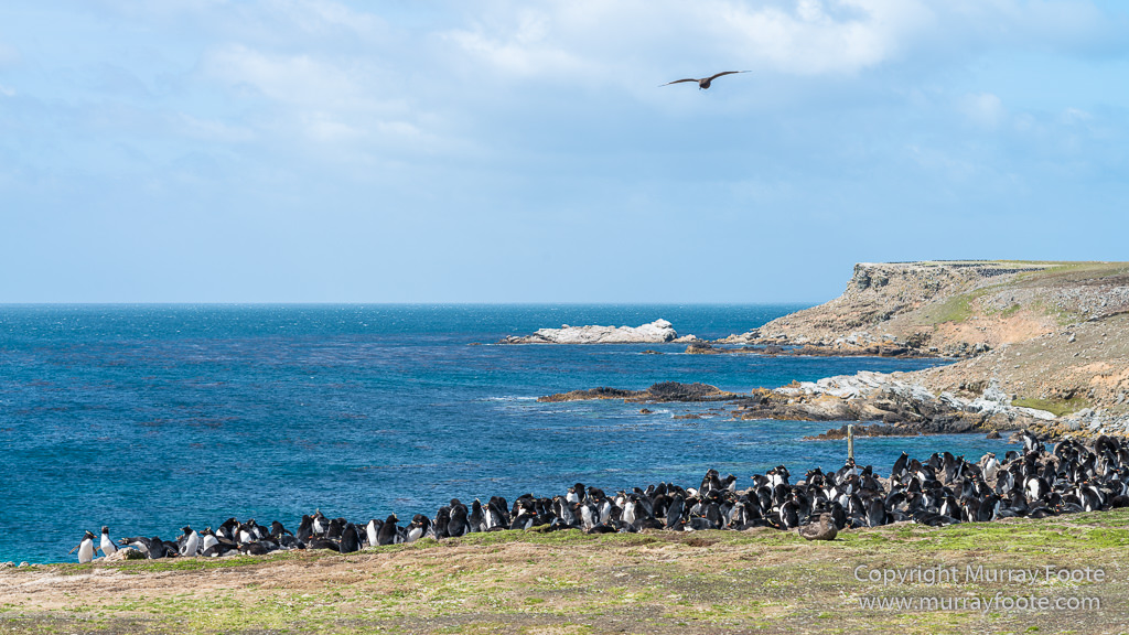 Now this is a colony of Rockhopper Penguins, again with a Skua patrolling overhead.