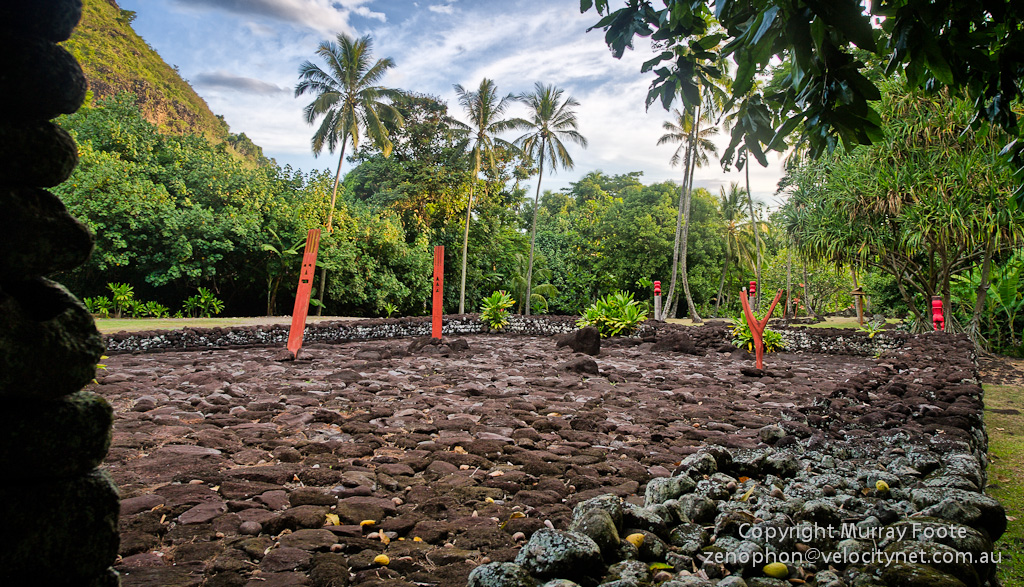 Large numbers of tropical fruit trees have been planted around the tahua. However, whether they were always there or not, this is not entirely authentic. Different trees were planted to make the area dark and mysterious. These included miro, tou, tamanu, ‘aito and pua.